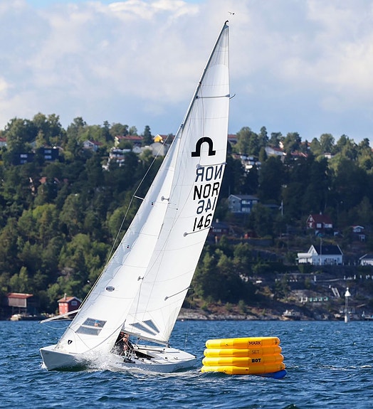 Soling Børresen Bådebyggeri med Kufer henger. Regattaklar.
