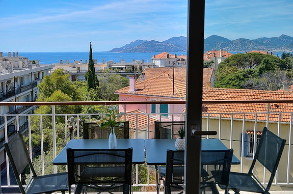 Langtids leie i Cannes: Pen 4-roms med havutsikt nær "alt", møblert, terrasser